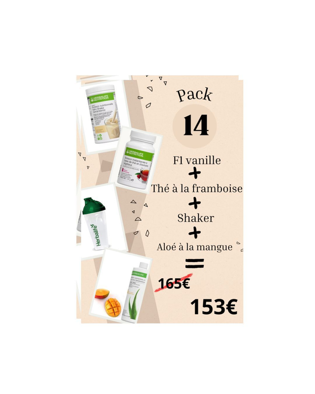 1 shake le matin + 1 thé + 3 bouchons d'aloé dans ta bouteille d’1L à boire tout au long de la journée.